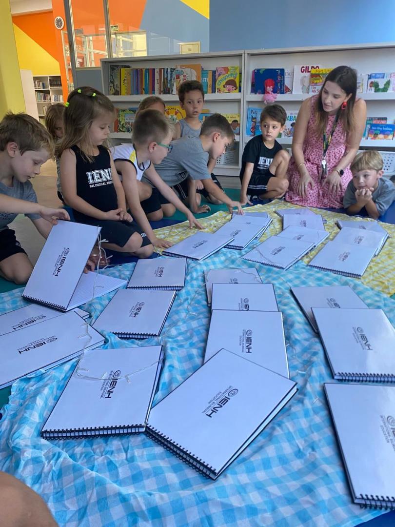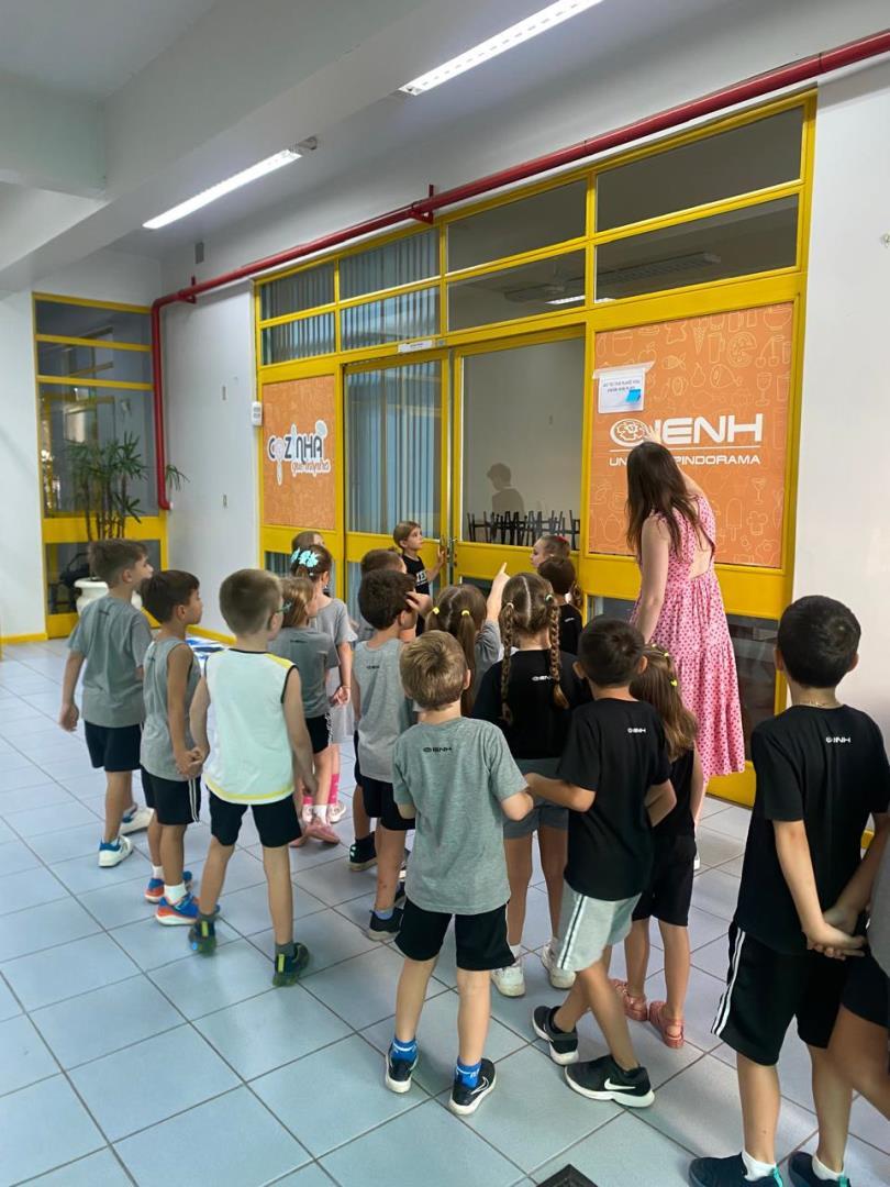 As turmas do Year 1 do Ensino Fundamental do Currículo Internacional Bilíngue da IENH – Unidade Pindorama participaram de uma atividade especial durante a aula de Língua Inglesa, que uniu jogos, colaboração e uma divertida caça ao tesouro. A proposta teve como objetivo ampliar o repertório linguístico dos estudantes, promover uma tarefa colaborativa e apresentar, de forma lúdica, um material importante para a rotina do Ensino Fundamental: os primeiros cadernos.
