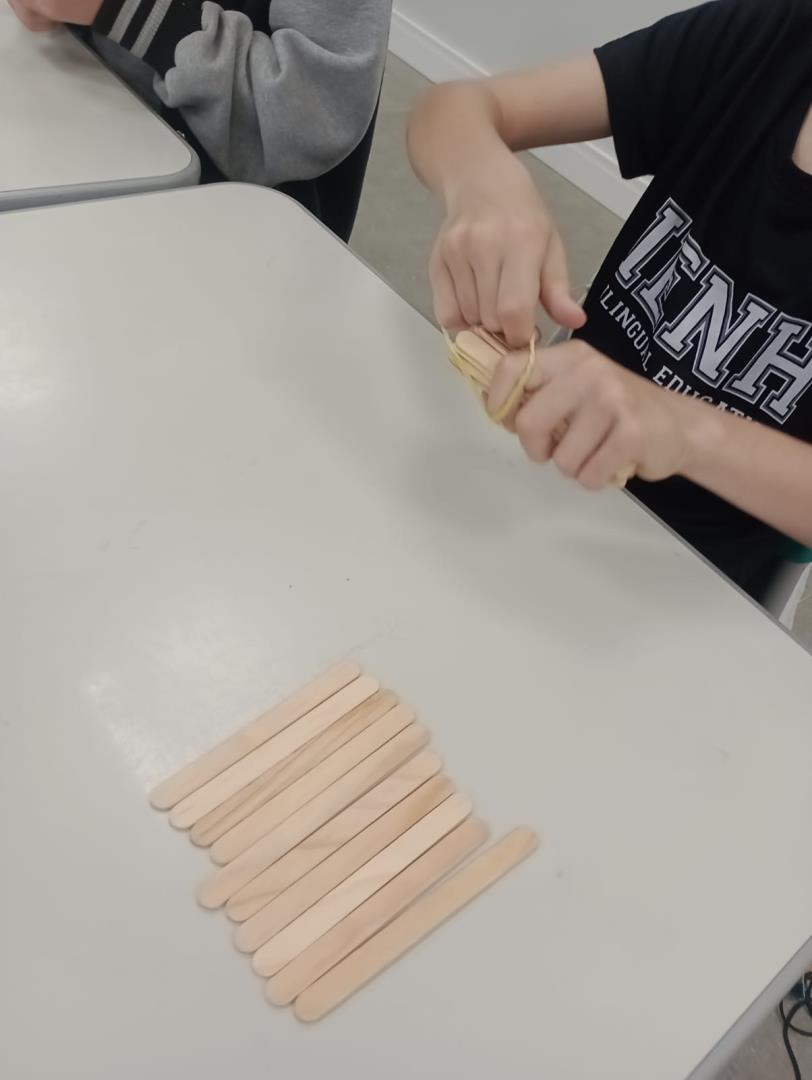 As crianças iniciaram a experiência explorando quantidades por meio de palitos, realizando contagens e combinações. Depois, foram desafiadas a criar figuras utilizando exatamente 10 palitos, exercitando a criatividade e a organização espacial.