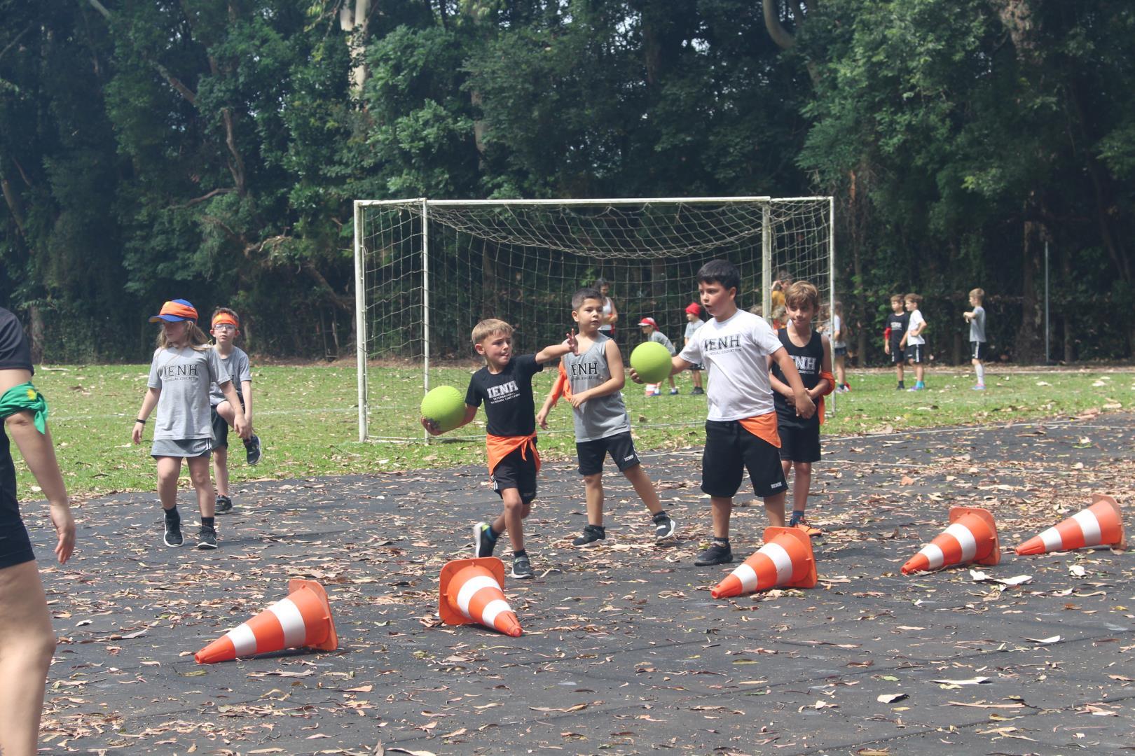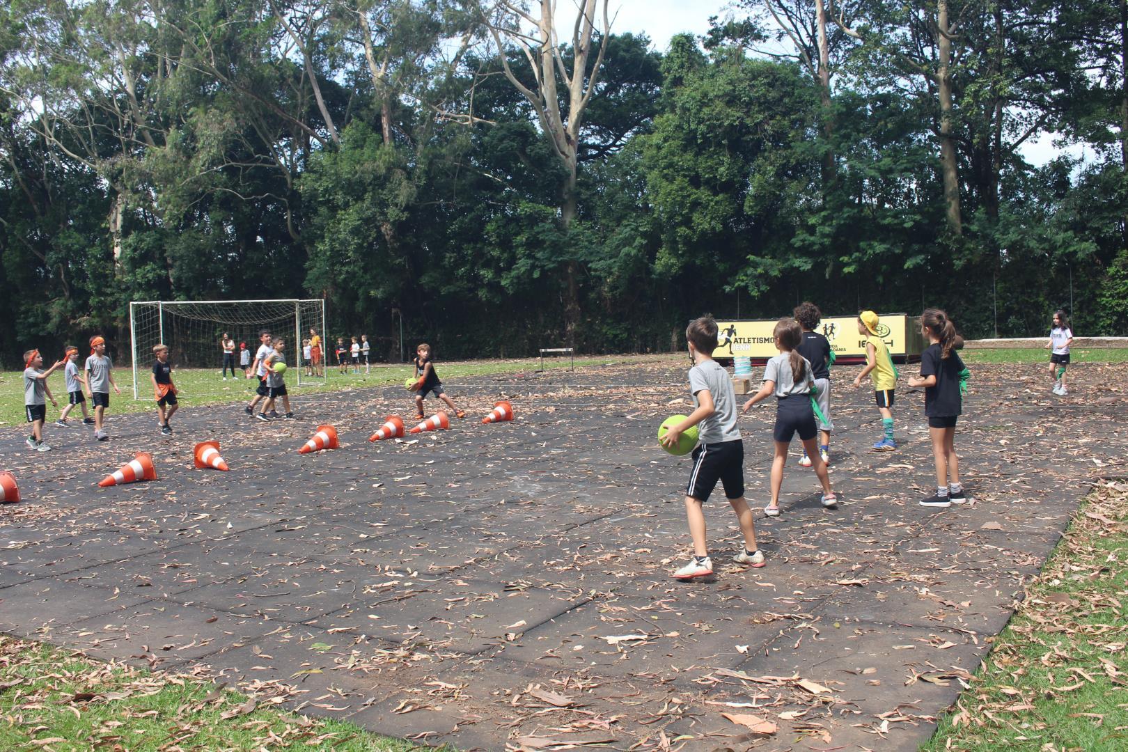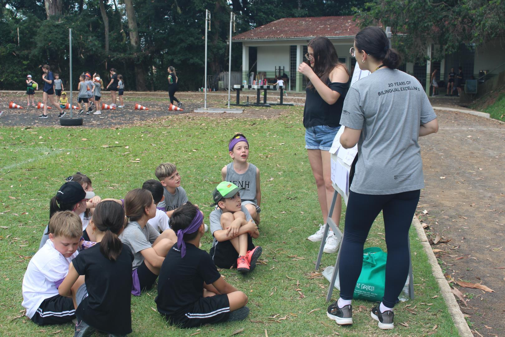 As turmas utilizaram as quadras cobertas e o campão para participar de uma gincana com atividades esportivas típicas de países de língua inglesa, ao mesmo tempo que praticavam o idioma. Na gincana, eles foram divididos em grupos, identificados por cores e, além disso, contaram com a ajuda dos estudantes do 3rd Grade do Ensino Médio da IENH – Unidade Fundação Evangélica.